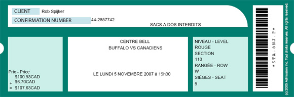 Zelf hadden wij kaarten voor de wedstrijd tegen de Buffalo Sabres op maandag 5 november 2007.