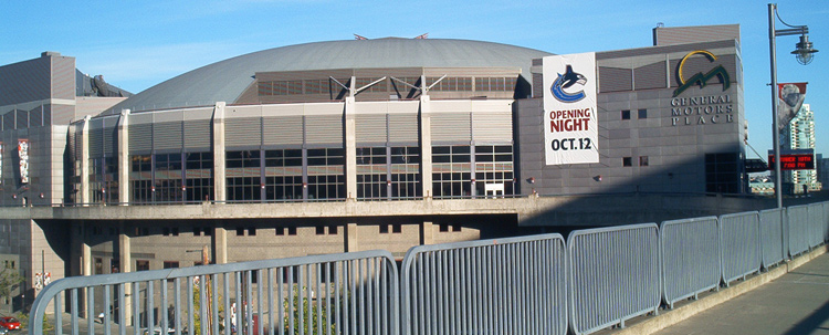General Motors Place in Vancouver. Via internet bleek het (nog) niet mogelijk om kaarten te bestellen voor deze wedstrijd. Dus op de eerste dag van het verblijf in Vancouver