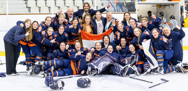 | Spelers en statistieken Nederland |  |  |  |  |  |  |  |  |  | | # | POS | Naam | Club | G | D | A | P | M | | 5 | F | Maree Dijkema | KSV Highlanders | 5 | 5 | 5 | 10 | 4 | | 4 | F | Kayleigh Hamers | SDE HF | 5 | 3 | 4 | 7 | 4 | | 10 | F | Julie Zwarthoed | SDE HF | 5 | 3 | 4 | 7 | 0 | | 16 | F | Esther de Jong | Kvarnsvedens GOIF IK | 5 | 2 | 4 | 6 | 6 | | 14 | D | Jet Milders | MAC Budapest | 5 | 4 | 0 | 4 | 0 | | 23 | D | Hilde Huisman | KSV Highlanders | 5 | 0 | 3 | 3 | 6 | | 18 | D | Michelle van Ooijen | KSV Highlanders | 5 | 1 | 1 | 2 | 0 | | 17 | F | Kimberly Collard | Utrecht Dragons | 5 | 0 | 2 | 2 | 8 | | 15 | F | Nina Visser | Utrecht Dragons | 5 | 0 | 1 | 1 | 2 | | 2 | F | Aimee Seppenwolde | Wesleyan University | 5 | 0 | 1 | 1 | 0 | | 12 | D | Roos Karst | Heerenveen Flyers | 5 | 0 | 0 | 0 | 4 | | 1 | G | Eline Gabriele | Utrecht Dragons | 5 | 0 | 0 | 0 | 0 | | 3 | D | Isabella van den Thillart | Red Eagles Den Bosch | 5 | 0 | 0 | 0 | 0 | | 6 | D | Maylin Hooijmans | Red Eagles Den Bosch | 5 | 0 | 0 | 0 | 0 | | 19 | F | Rana Ilksoy | Amsterdam Tigers | 5 | 0 | 0 | 0 | 0 | | 21 | F | Yente Koolwijk | HIJS Den Haag | 5 | 0 | 0 | 0 | 0 | | 24 | F | Danique Koghee | Hammarby IF | 5 | 0 | 0 | 0 | 0 | | 25 | G | Arwen ten Cate | Leeuwarden Capitals | 3 | 0 | 0 | 0 | 0 | | 20 | G | Djarna Mans | Eindhoven Kemphanen | 2 | 0 | 0 | 0 | 0 |  | | |